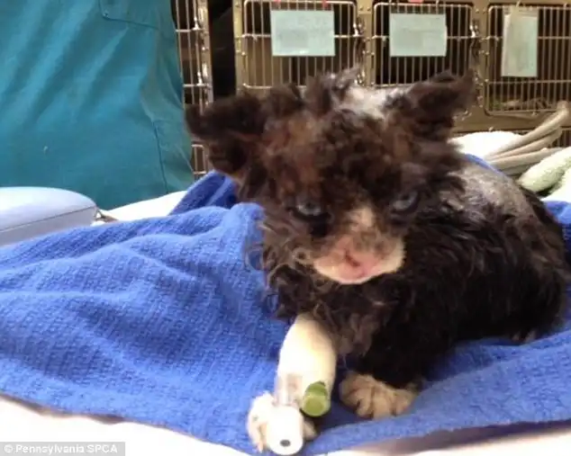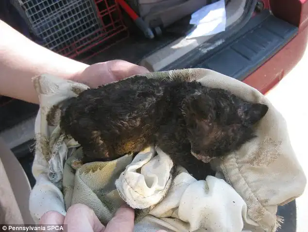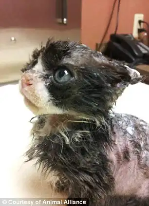 В штата Нью-Джерси,группа недоразвитых дебилов облила бензином маленького котёнка и подожгла.Котёнку повезло он остался жив благодаря прохожим которые спугнули дебилов и затушили огонь.Ветеринарам местного приюта пришлось потрудится чтобы котёнок остался жив после полученных ожогов,сейчас он на реабилитации в приюте. Полиция совместно с организацией по защите животных объявили награду за информацию о дебилах в размере 6000$.