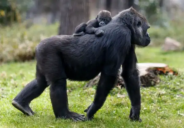Горилла несёт на спине своего детёныша в Зоопарке Северной Каролины в Ашеборо, Северная Каролина, 14 февраля.
