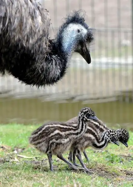 Птенцы эму гуляют по лужайке в Берлинском зоопарке, Германия, 16 апреля.