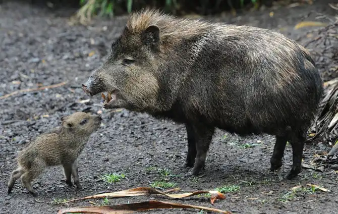 Детёныш пекари играет со своей матерью в Мельбурнском зоопарке в Австралии, 14 декабря.