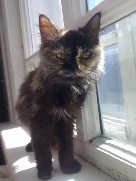 Пожалуйста, помогите! Очень нужна передержка или хозяин!!! Подкинули котенка, пушистый, но худющий, один скелет. Не могу оставить у себя! Ему негде ночевать!!! Сидит около дома, на улице...