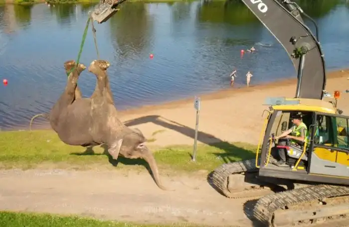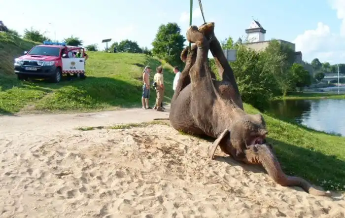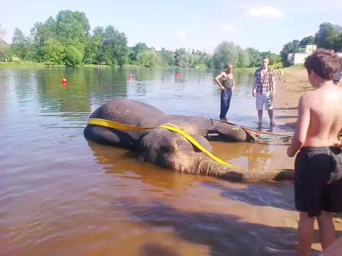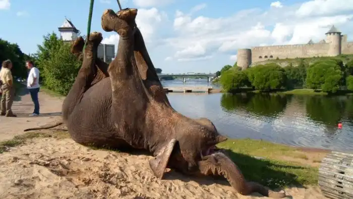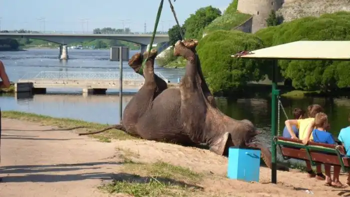 Странное происшествие случилось недавно в Эстонии, куда с новой программой приехал один немецкий цирк. День был очень жаркий, поэтому "гвоздя программы" - циркового слона - решили прогулять до реки, в которой он был рад искупаться. Но потом слон неожиданно упал и исчез под водой. Спасти беднягу не удалось, все представления пришлось отменить.