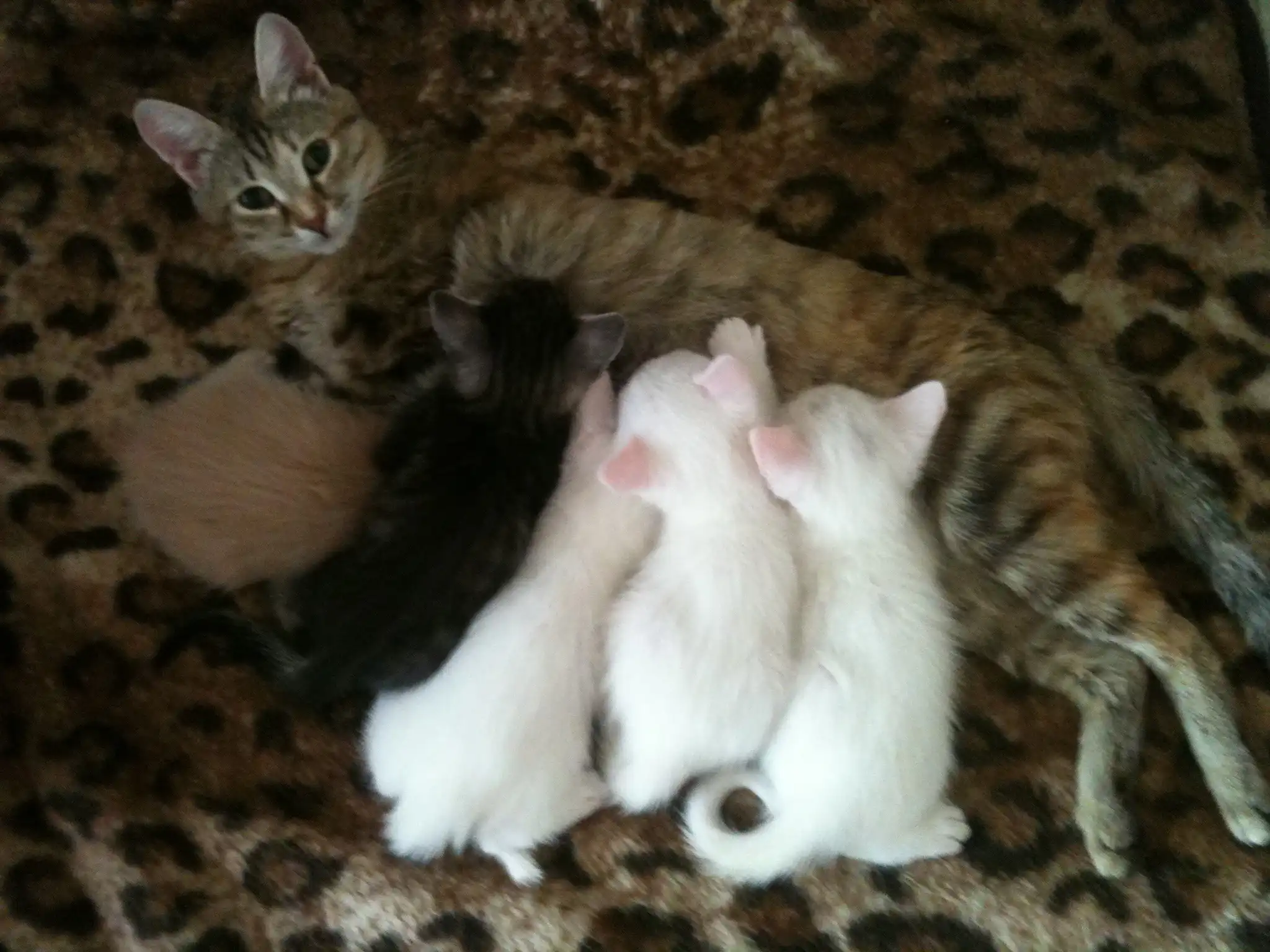 Помогите пожалуйста! 27 мая замечательная киса Мура родила 5 веселых которебят. Сама кошка и ее дети находятся на передержке вот уже 3 месяца (весь период беременности и взросления котят до месяца), но больше их держать возможности нет. Все они здоровы, кошка осмотрена ветеринаром и привита. Сама кошечка очень красивая и миниатюрная, аккуратная, мебель и обои не дерет, ходит исключительно в лоток, а главное - очень добрая, ни разу не поцарапала. Котятам месяц, 3 мальчика и 2 девочки, к лотку приучены, кушают сами.