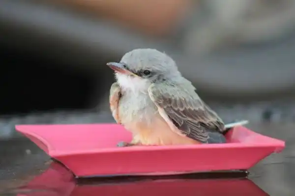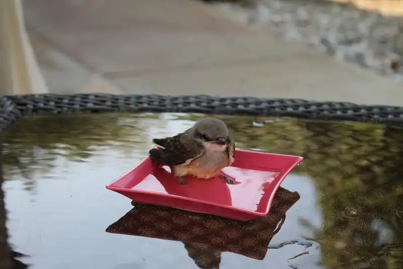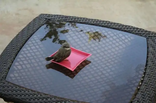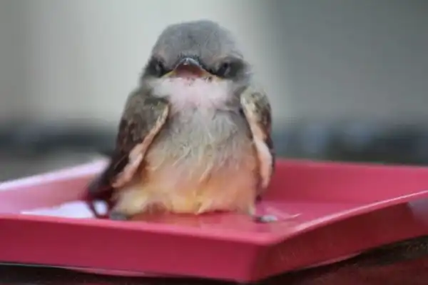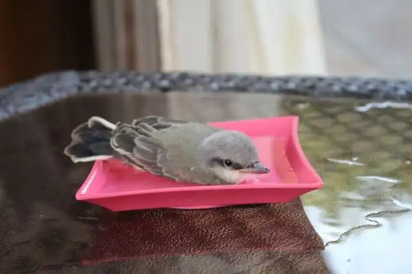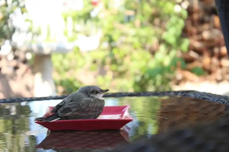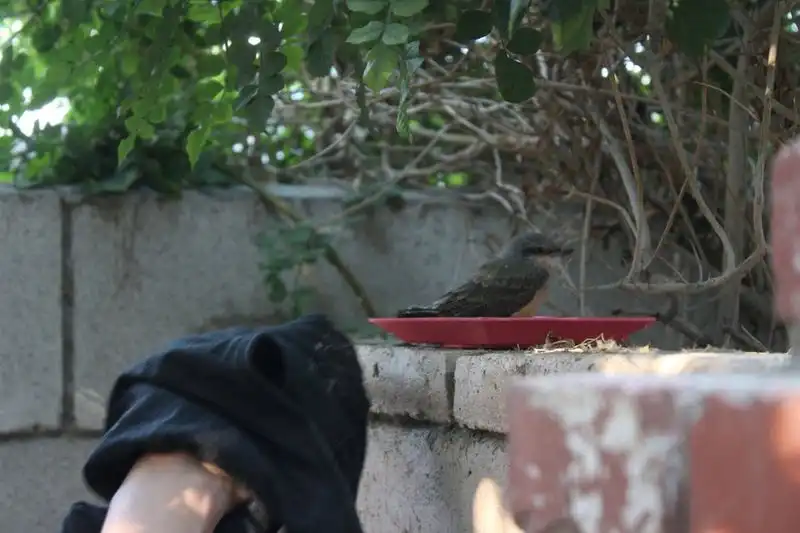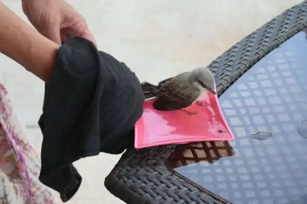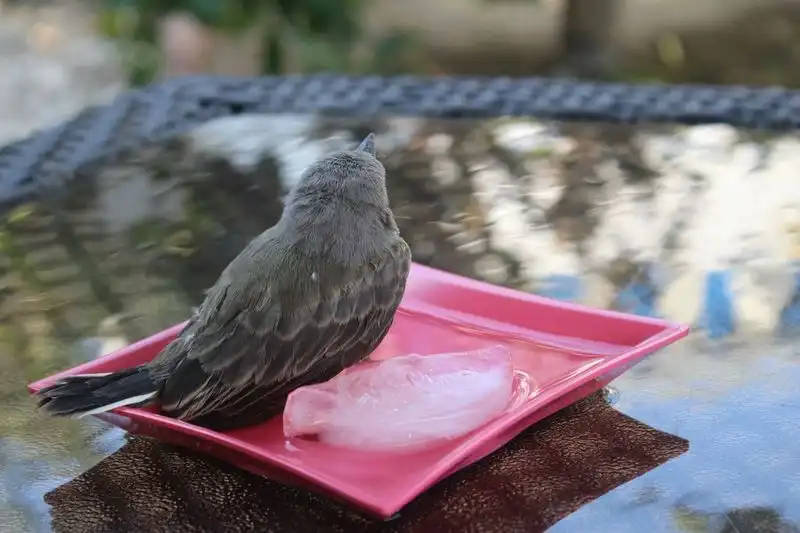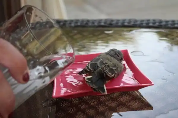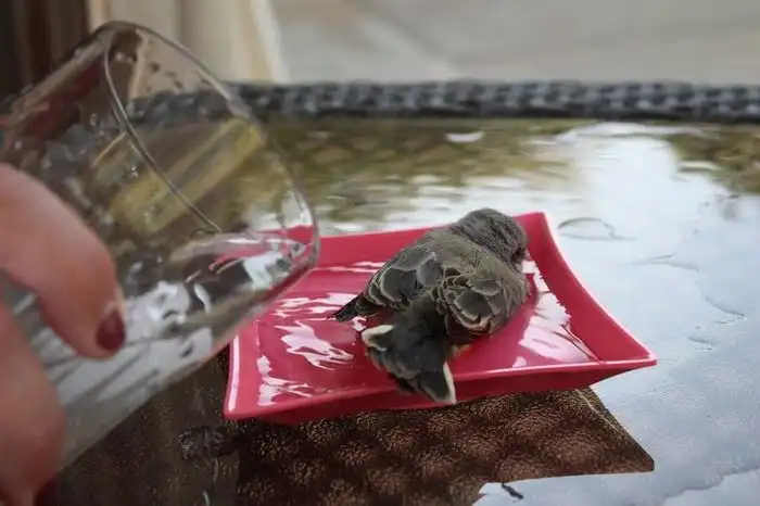 Было так жарко, что птицы буквально падали с неба. Мы сидели в бассейне, когда этот парень упал прямо перед нами. Он лежал на раскаленном тротуаре с открытым клювом, так что я побежал внутрь, набрал воды и вылил ему в рот. Потом мы решили набрать в тарелку воды и поместить его в тенек.