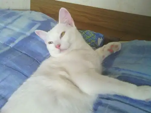 Белоснежный котик-подросток. Обладает довольно своенравным и независимым характером. Вырастет крупным и достойным котом!