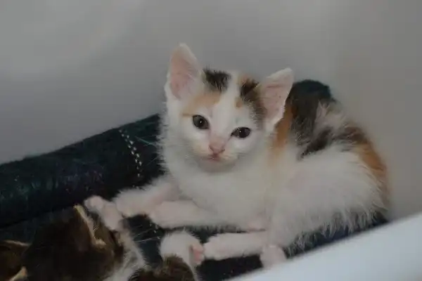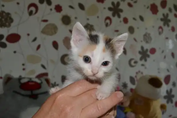 Отдадим в хорошие руки одномесячную кошечку. Трехцветного окраса. Найдена в районе центрального рынка. Подвижная, игривая, будет хорошим другом. Лоточек знает.