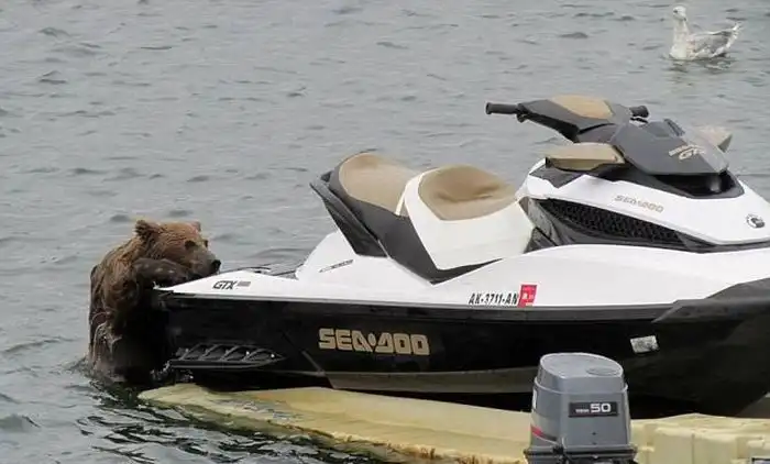 Эти забавные снимки были сделаны на Аляске, а их главным действующим лицом стал медвежонок, который, видимо, очень хотел прокатиться на водном мотоцикле ;)