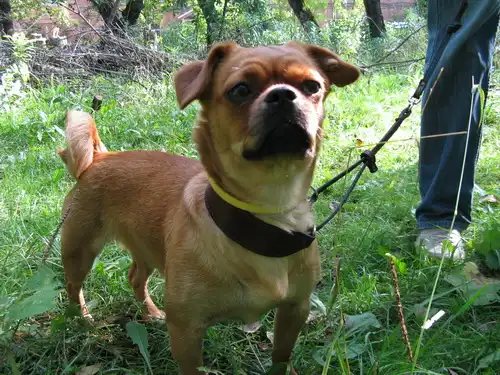упитанная, молодая собачушка, размером с крупную кошку. Слишком доверчива,
