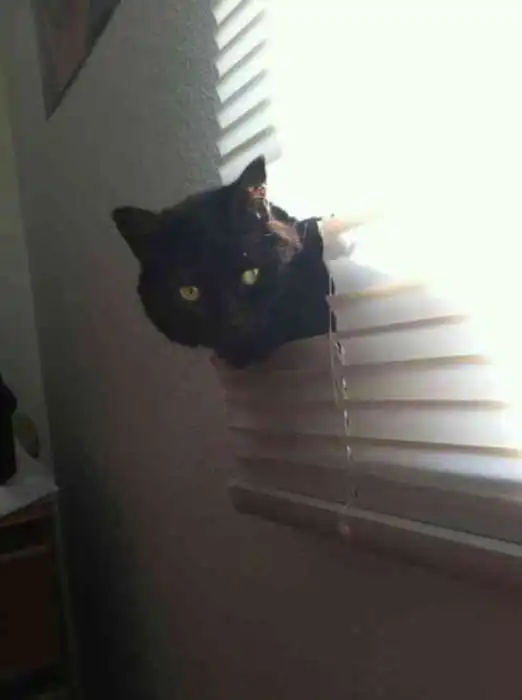 Смешная и весьма забавная подборка фотографий котов, для которых оконные жалюзи являются злейшим врагом ))