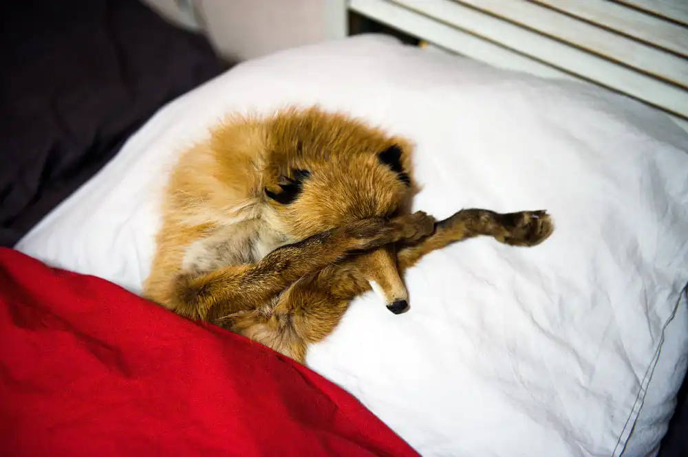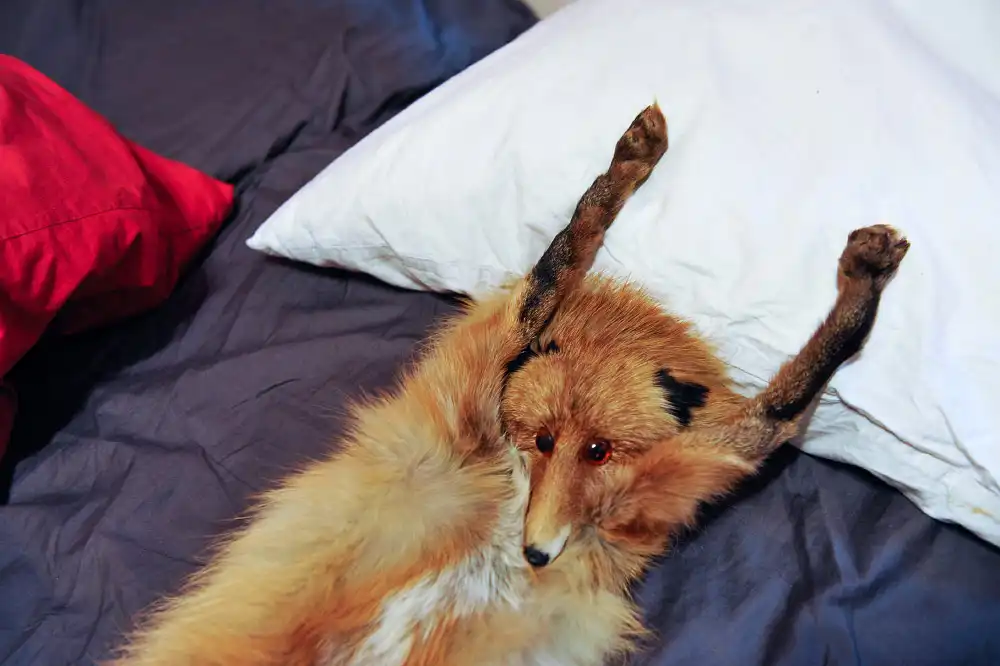 Лис живет в самой обычной московской квартире и прекрасно себя чувствует. Он спит на отдельной кровати и очень любит поваляться до 11 утра.
