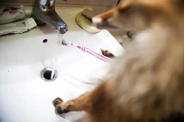 После зарядки Лис идет умываться и чистить зубы. Гигиена – это очень важно, ведь порядочные животные всегда следят за собой.