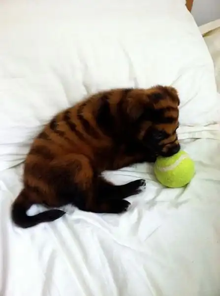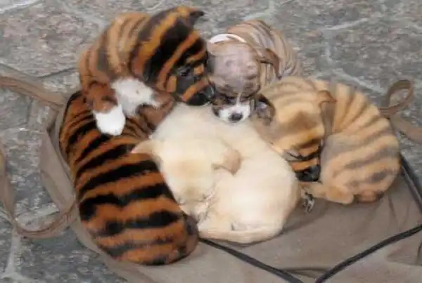 Первые фотографии щенков якобы новой породы появились в сети в 2010 году - году Тигра. Продавцы утверждали, что это специально выведенная новая порода, однако позже выяснилось, что происхождение полос далеко не природное. Оказывается, щенят окрашивают токсическим лаком, чтобы получить определенный узор.