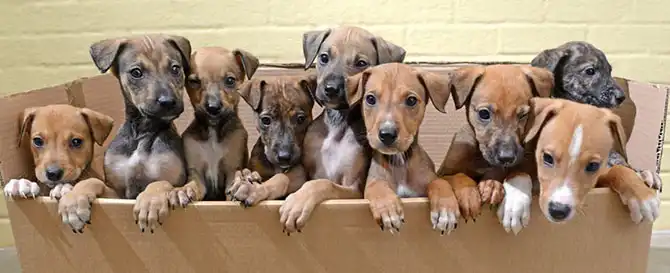Эти брошенные щенки-ищейки были названы именами персонажей из «Аббатства Даунтон» в надежде, что это побудит людей забрать их себе. (слева направо) Джимми, Карсон, Марта, Том, Граф, Кора, Эдит, Дейзи и Альфред были найдены в картонной коробке в Саутгемптоне.
