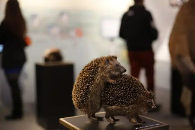 В Германии прошла необычная выставка работ таксидермистов на тему секса в мире животных. Среди всех скульптур сношающихся парочек больше всего интереса у меня лично вызвал половой акт ёжиков. Теперь то я знаю, как они занимаются любовью - так же, как и все остальные. Есть в этом изрядная доля садомазохизма.