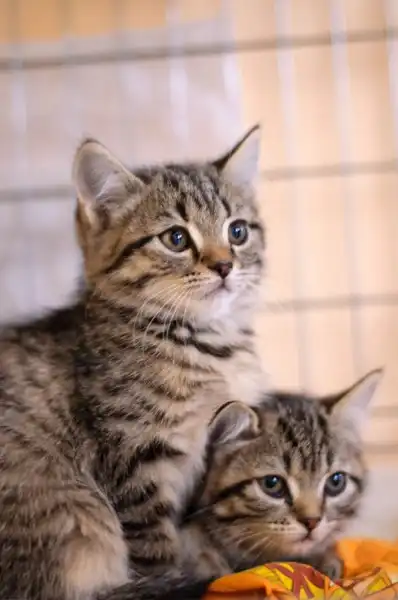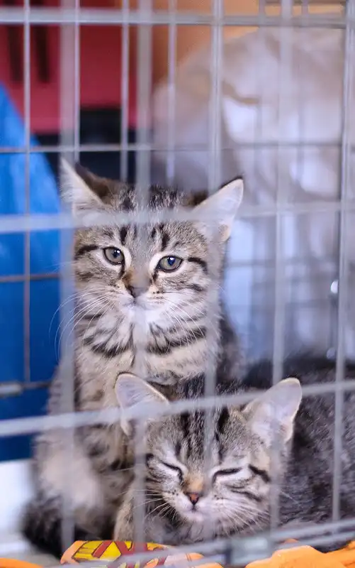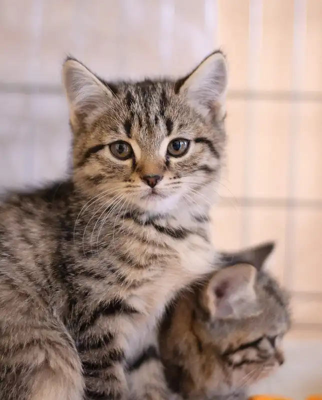 А эти двое не смогли видно выбраться, они просидели в коробке весь день, обнаружили их только вечером. Но эти котята видно счастливчики, мальчика тоже забрали в семью, а девочке нашлась передержка. Они так похожи, что я могу определить, кто из них оставшаяся девочка. Она продолжает поиски добрых людей, которые будут о ней заботиться и больше не предадут и не выбросят в коробке. Очень красивый полосатый ребенок, немного похожа на британских. Возраст примерно 2 мес.