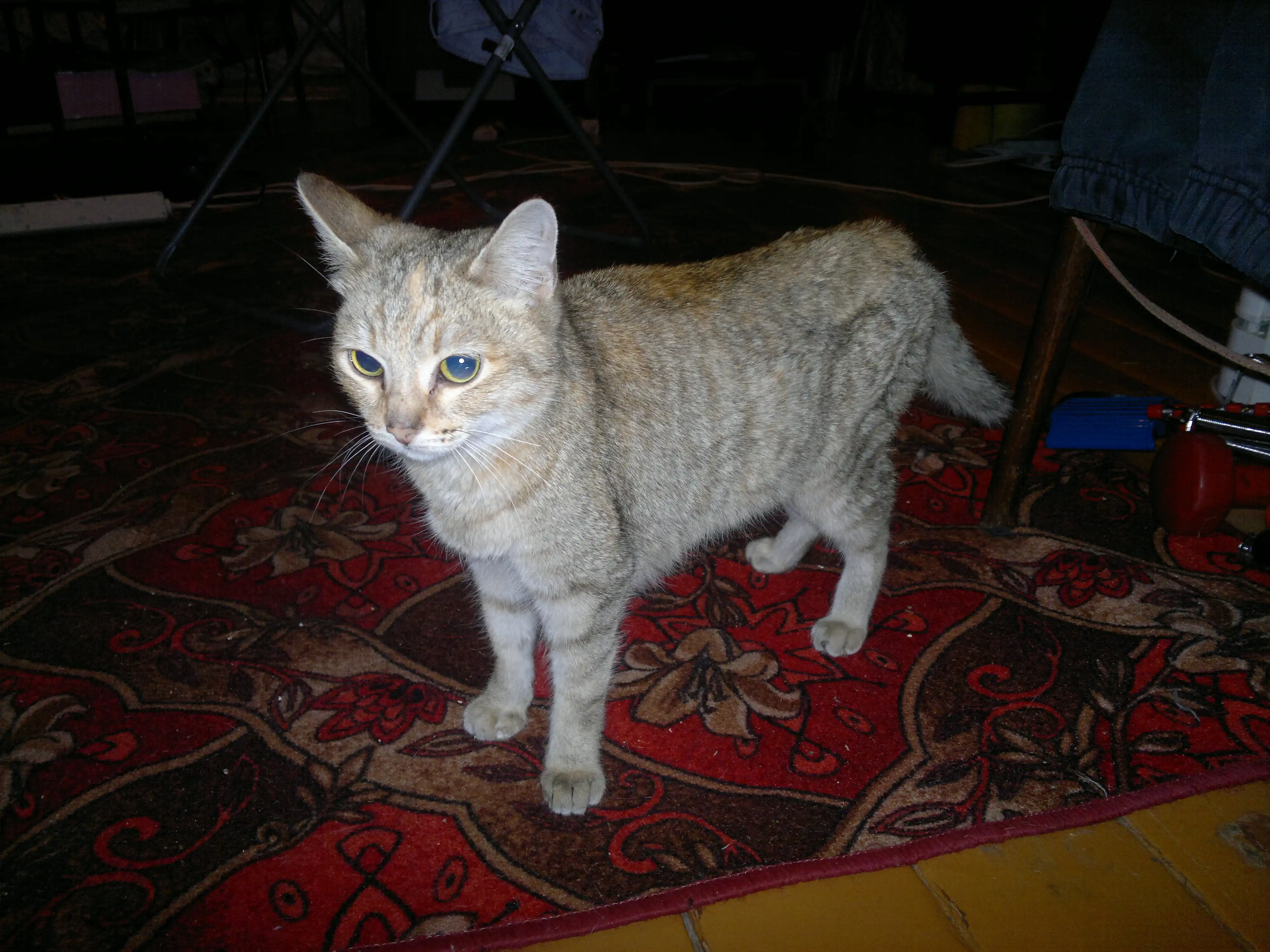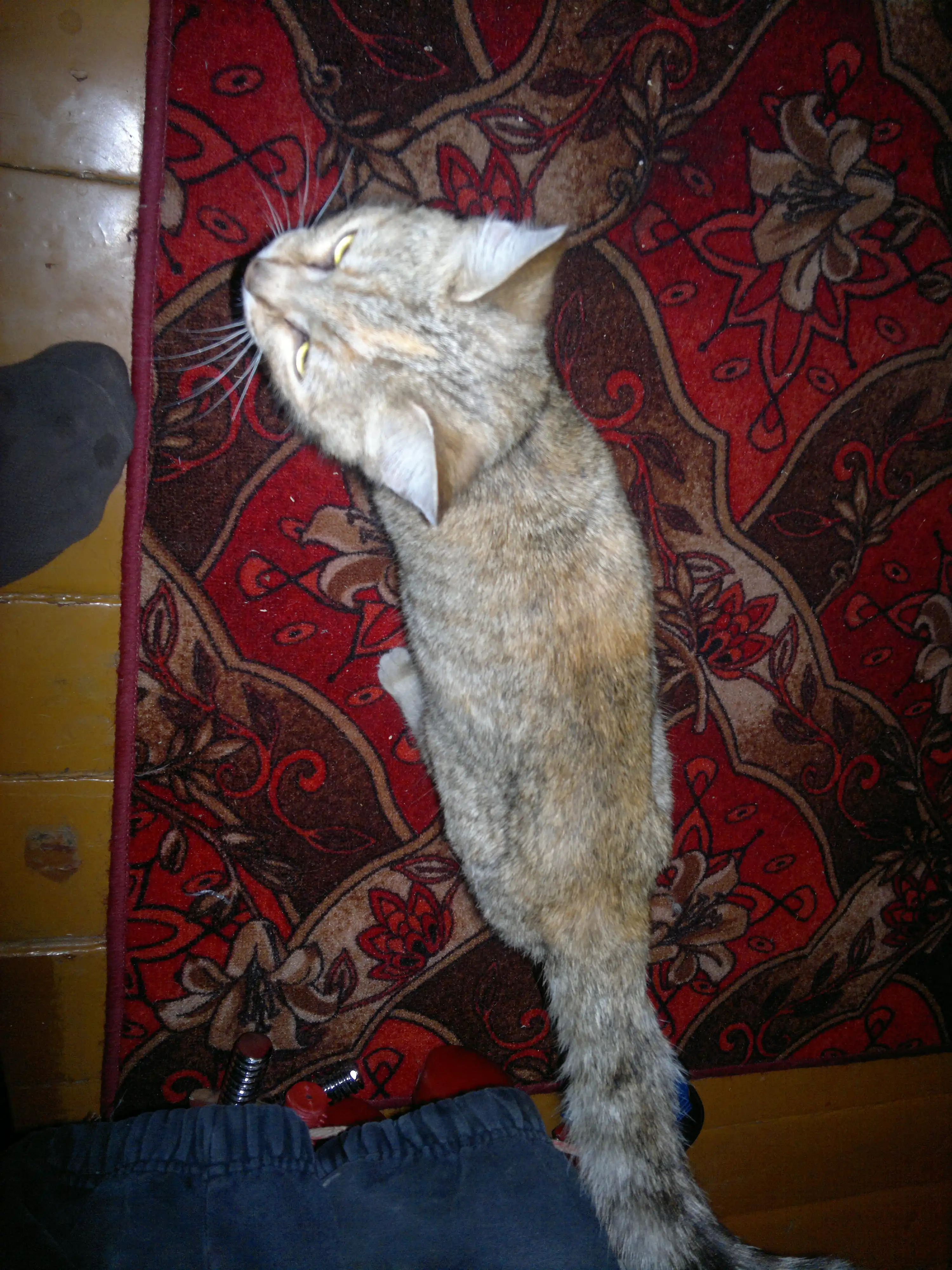 Пошел утром в магазин, кошка стояла на углу и жалобно мяукала, позвал её, подбежала, вернулся домой попросил жену накормить.Первый раз держал в руках такую худую кошку. Одни кости и мех. Накормили, она не спала мяукала всё время. Отвезли к ветеринару, сказали шансов мало что выживет, написал заявление что ответственность за лечение на мне, кошку обкололи всем чем могли и увезли домой спать (ночью мяукала через раз, приходилось сидеть с ней). На утро уже бодрячком, ест и пьет. Ветеринар сказал, что кошка домашняя была, просто кто-то выкинул, по зубам предположили, что год всего, весит 1,7 кг(у нас кот 1 год весит 4,5 кг), назначил много уколов и дозированное правильное питание.Пока живет у нас, но нужны хозяева у себя оставить не можем у нас 2 уже живут. Кошка сразу стала ходит в лоток, со временем как-только потолстеет=) будет играться. Готов каждый месяц привозить питание новым хозяевам.