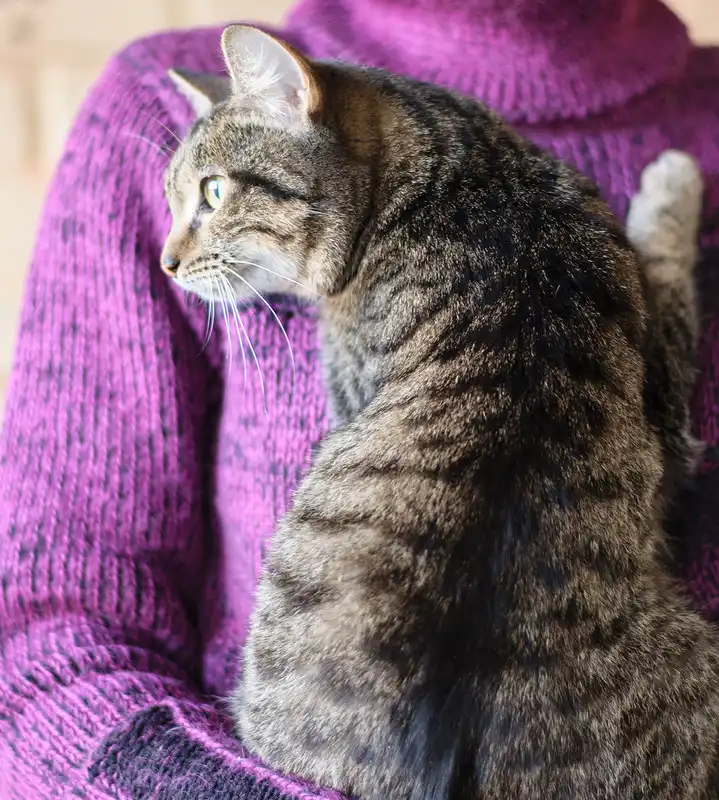 Кошка Полли, возраст около 1 года. Найдена котенком на Центральном рынке. Классическая полосатая кошка, немного упрямая. Внимание к себе любит, но не навязчива, может существовать параллельно с людьми. Пользуется лотком, питается готовыми кормами. Стерилизована.