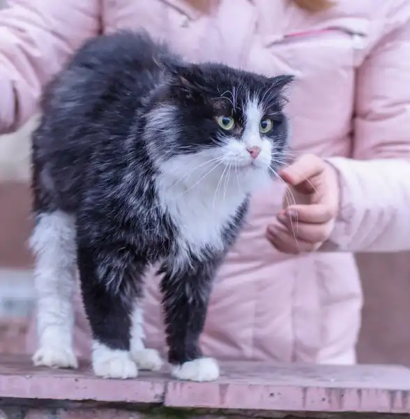 Очень красивый кот Феликс, окрас черно-белый, но распределение белого необычное, все черное в белую крапинку. Белые носки и белая манишка. Полупушистый, шерсть очень мягкая и шелковистая, не закатывается. Возраст примерно 2 года. Найден осенью на дачных участках. С людьми спокоен и ласков, но не любит других животных, к котам может быть агрессивен. Поэтому ищет дом, где он будет единственным любимцем. Кот крупный, упитанный, очень приятный в общении. Питается готовыми кормами, лотком пользуется. Пролечен от ушного клеща, нужно будет наблюдение за ушами. Ну и небольшой дефект - одно ушко обморожено, хотя это совсем не портит внешности кота. Кастрирован.