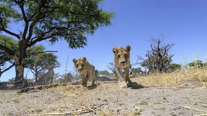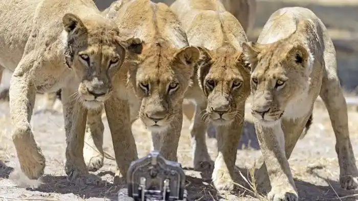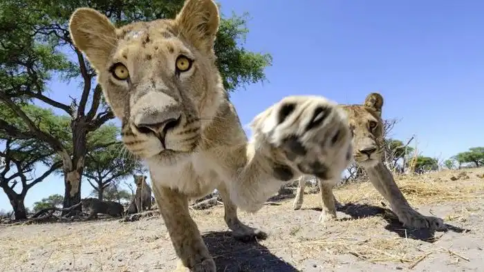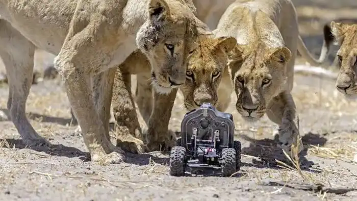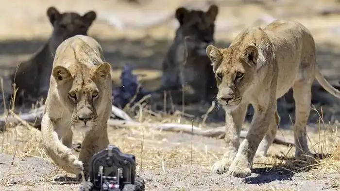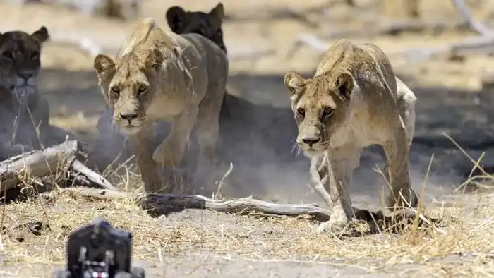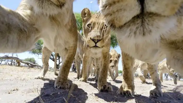 Позитивные фотографии и видеоролик, заснятый в заповеднике Ботсваны. Целый выводок детенышей льва очень заинтересовался передвижной камерой на радиоуправлении ;)