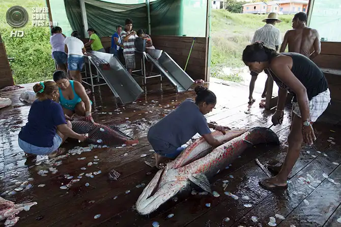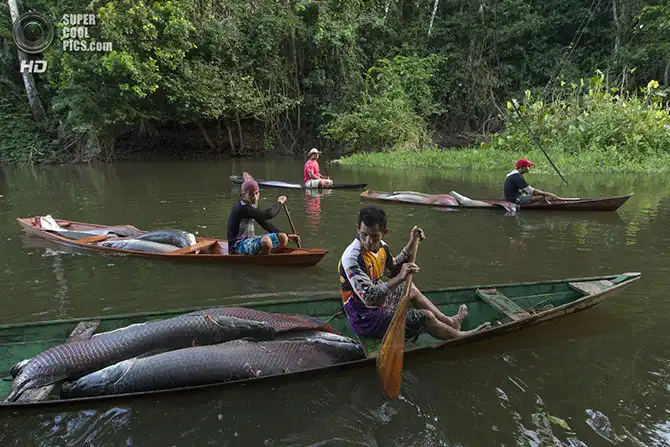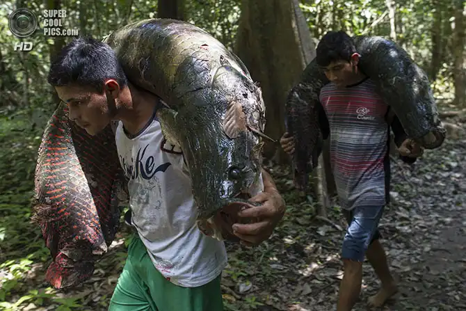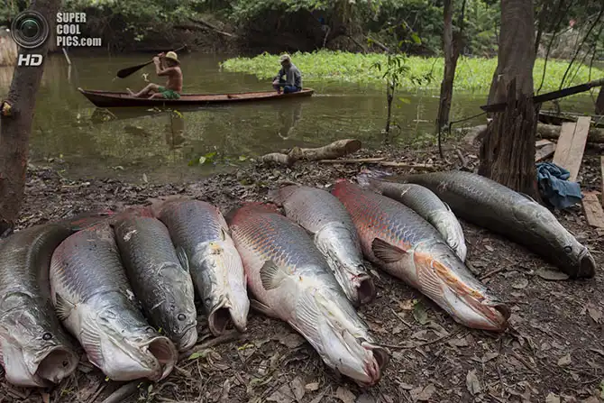 Взрослые особи достигают 2,5 м в длину, весят до 200 кг. Благодаря своей архаичной морфологии арапаима считается живым ископаемым. Более того, она способна дышать на суше! В Бразилии её ловля разрешена лишь раз в году. Первоначально арапаиму добывали с помощью гарпунов, когда она поднималась подышать на поверхности. Ныне её ловят преимущественно сетями.