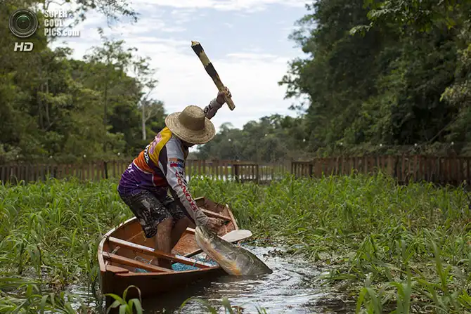 Арапаима — это одна из крупнейших пресноводных рыб в мире. Она обитает в бассейне Амазонки (на территории Бразилии, Гайаны и Перу).