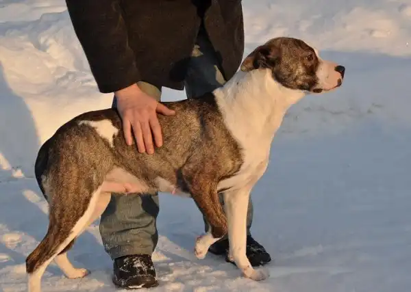 Боня - ласковая собака среднего размера, приветлива в общении с людьми и животными.