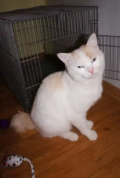 У Кеши интересный белый окрас с нежно-рыжими вкраплениями и полосочками на хвосте. Мягкая плюшевая шубка, которую очень приятно гладить к обоюдному удовольствию Человека и Кота. Кот здоров, в меру упитан, кастрирован, возраст около 2-х лет, правила поведения и гигиены в доме знает. Аппетит отменный (кушает профкорм и мяско тоже с удовольствием). Отдается только в квартиру, ответственным людям, желательно без маленьких детей по договору об ответственном содержании животного.