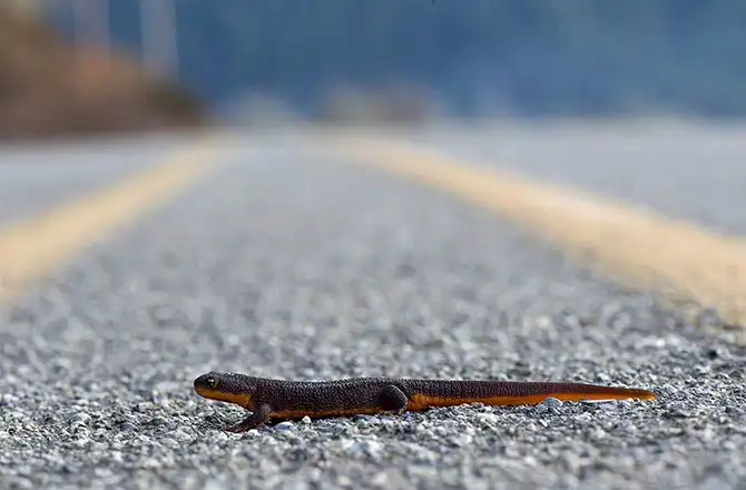 Тритон переходит дорогу в штате Орегон. В его грубой коже находится яд, поэтому тритон является одним из наиболее токсичных животных, известных науке. Исследование говорит: токсина из одного тритона хватит, чтобы убить 25 000 мышей.