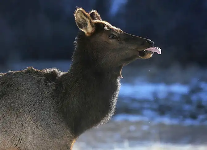 Лось на ранчо в штате Юта. По внешнему облику лось заметно отличается от других оленей. Туловище и шея у него короткие, холка высокая, в виде горба. У самцов огромные (самые крупные у современных млекопитающих) лопатообразные рога; их размах достигает 180 см при массе 20—30 кг. Рога лось сбрасывает ежегодно в ноябре — декабре и ходит без них до апреля — мая. Самки вообще безрогие.