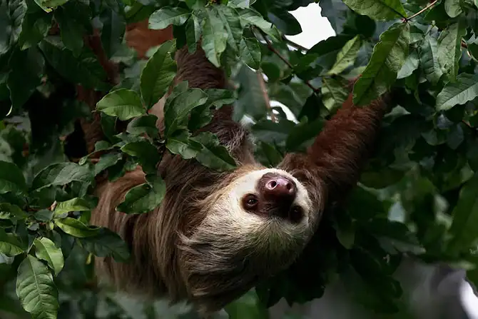 Ленивец висит на дереве в Панаме. Ленивец не может ни защитить себя, ни убежать от хищника. Тем не менее ленивцы очень многочисленны благодаря окраске и медленным движениям, делающим их практически незаметными.