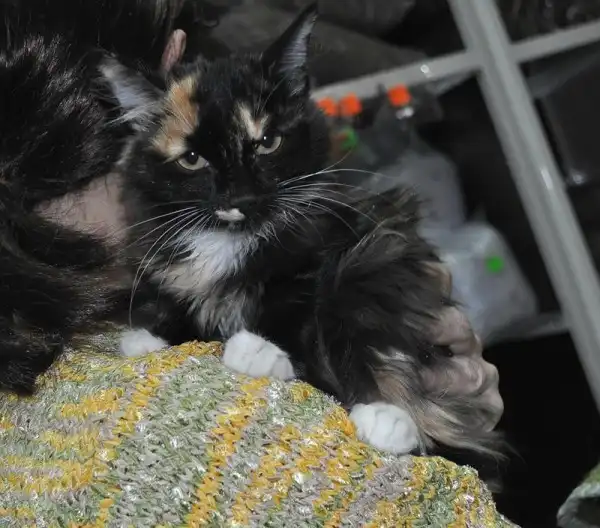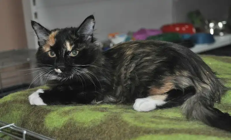Котенок девочка, возраст примерно 3 мес., окрас черепаховый, пушистая. Еще немного боязливая, возможно, ей доставалось от людей, но постепенно оттаивает и привыкает. Питается готовыми кормами, лотком пользуется. Имеет сертификат на скидку при стерилизации.