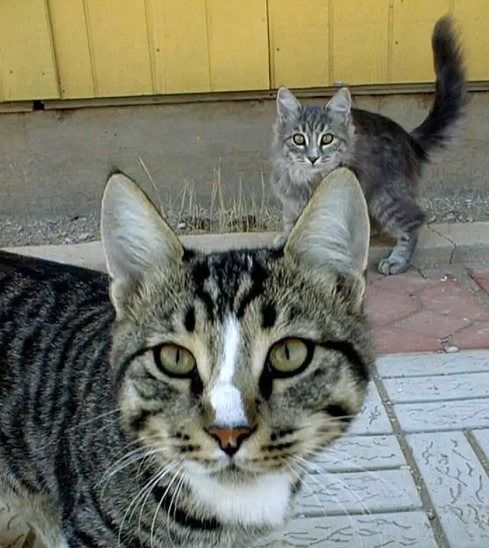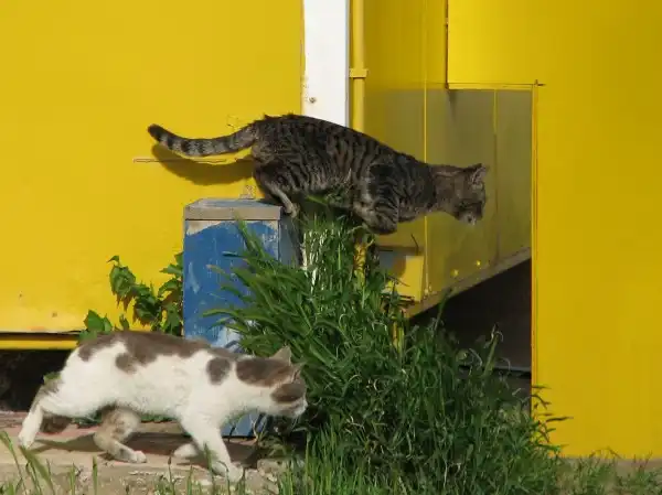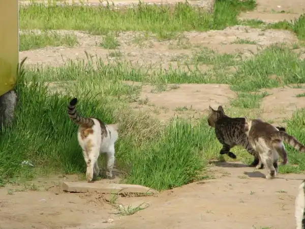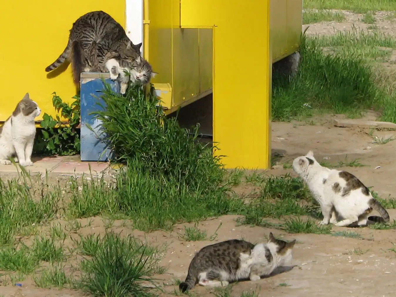 Одичавшие кошки в полузаброшенном городке в пустыне.