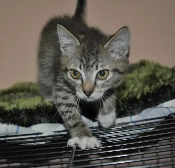 Вот такое маленькое полосатое создание было выброшено в павильоне центрального рынка. Котенок мальчик, примерно 2,5 мес. Робкий, ненавязчивый малыш. Лотком пользуется, питается влажными и сухими кормами для котят. Прошел необходимые гигиенические процедуры. Имеет сертификат на скидку при кастрации.