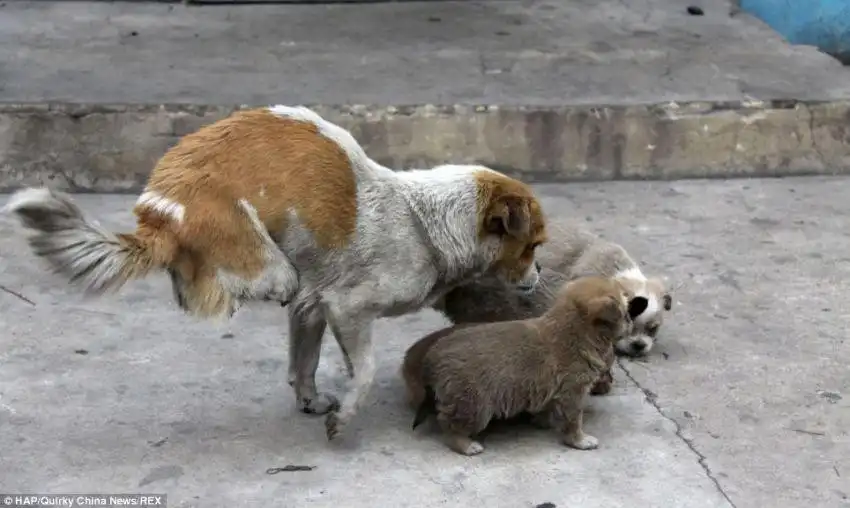 Удивительная собака из Китая, у которой нет двух задних лап, сумела родить и выкормить своих четырех щенков