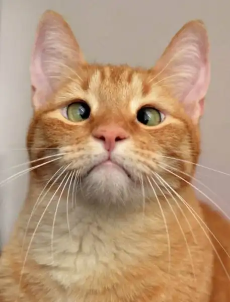 Рыжий кот Джарвис П. Уизли был найден в Калифорнии, когда ему было всего четыре недели от роду. Хозяин, заметив, что у котенка косые глаза и проблемы с дыханием, выбросил его на улицу. Но малыша подобрала местная жительница Дарья Келли.