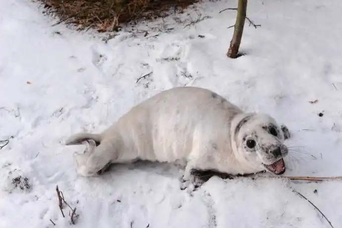 Житель поселка Лебяжье (Ломоносовский район Ленобласти) обнаружил в четверг во дворе своего дома детеныша серого тюленя.