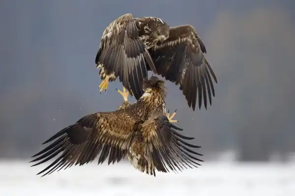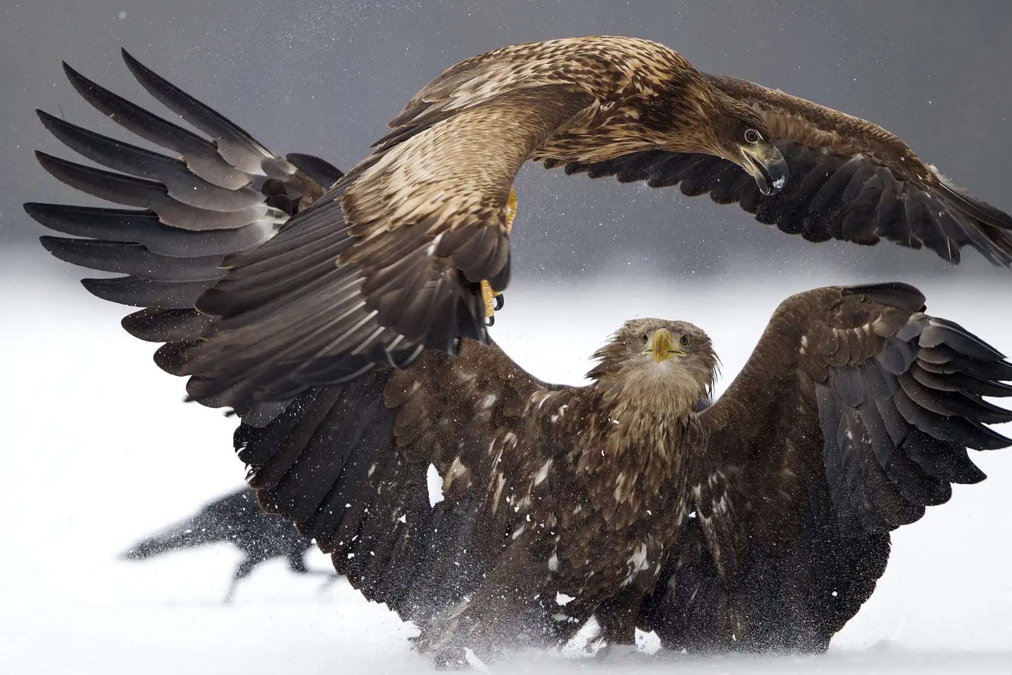 37-летний фотограф дикой природы Сильвия Домарадзка (Sylwia Domaradzka) запечатлела двух орланов-белохвостов, которые яростно боролись за пищу в лесу под Варшавой.