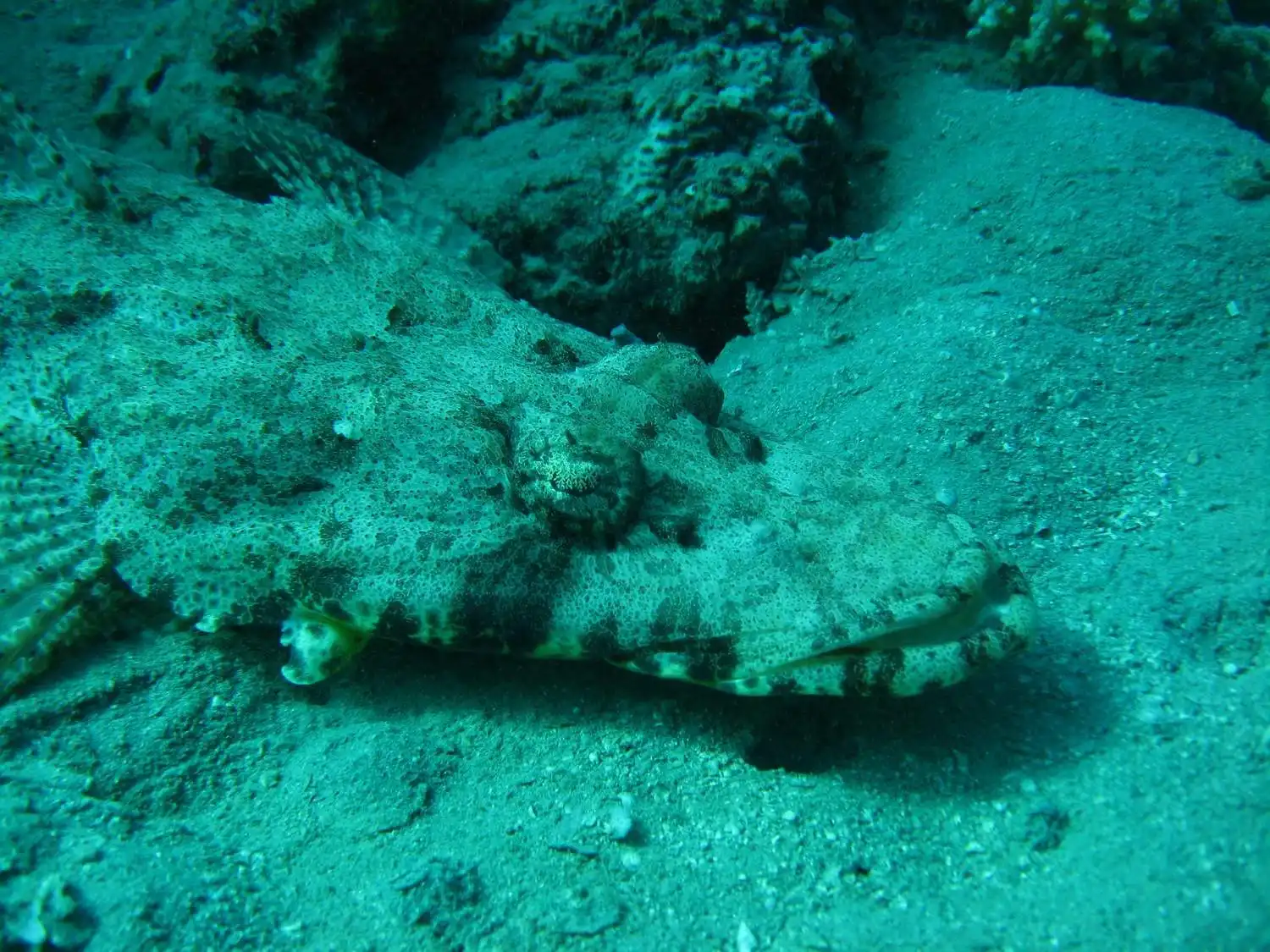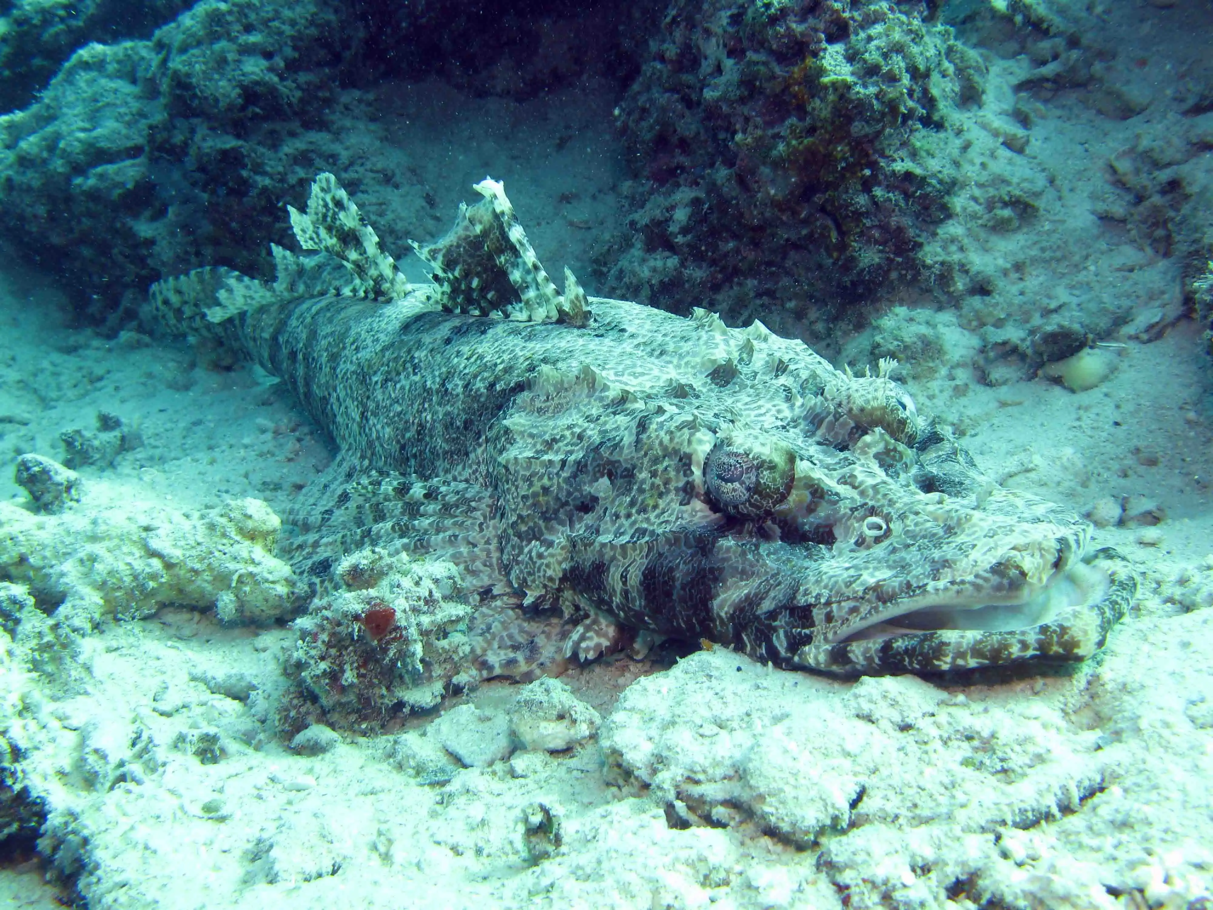 Рыбу-крокодила или Пятнистого плоскоголова (Cociella crocodila) можно встретить в водах Красного моря как во время дайвинга, так и непосредственно у берега, в хитросплетениях домашнего рифа. Главное — нимательнее присматриваться к дну. Охота этих крупных рыбин устроена так, что они сливаясь с дном лежат без движения и ждут свою добычу. Для человека рыба-крокодил совершенно не опасна, если не трогать ее руками. На людей они не нападают. Это очень смирные рыбины.