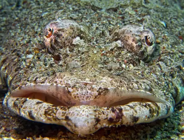 Первое впечатление, когда ты видишь рыбу-крокодила, что перед тобой действительно лежит крокодил! Но только внешностью сходство и завершается, так как образом поведения они отнюдь не в своих знаменитых собратьев.