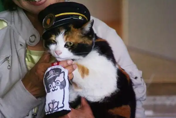 На железнодорожной станции Киси в японском городе Кинокава смотрителем работает кошка по имени Тама - она занимает эту должность последние семь лет. Правда, "работает" - не совсем правильное слово: в основном она сидит в корзинке, а её фотографируют. Выглядит кошка в своей фуражке весьма представительно.