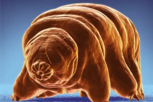 Тихоходка еще называется водяным медведем. Эти микроскопические беспозвоночные могут жить практически везде. Благодаря способности впадать в состояние криптобиоза, они могут выживать даже при самых экстремальных условиях: охлаждение гелием до 271 гр.С, нагревание до 100 гр.С, облучение в 570 000 рентген (смертельная доза для человека всего 500 рентген). Но самая поразительная способность заключается в том, что они могут жить даже в космосе!