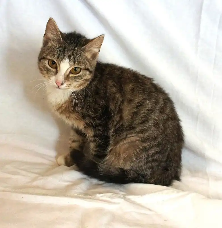 Лариска - маленькая полосатая кошечка с белым носиком. Ей примерно 10 мес. Милый, ласковый ребенок, очень охотно идет на контакт с людьми. Жила в большом кошачье-собачьем коллективе, хорошо уживается с другими животными. Питаться может как готовыми кормами, так и натуральными. Лотком пользуется. Стерилизована.