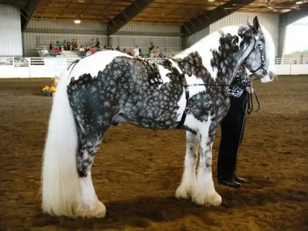 Обычно ассоциируется с лошадьми породы аппалуза. Существует несколько пятнистых пород лошадей, в том числе к ним относится датский кнабструппер.