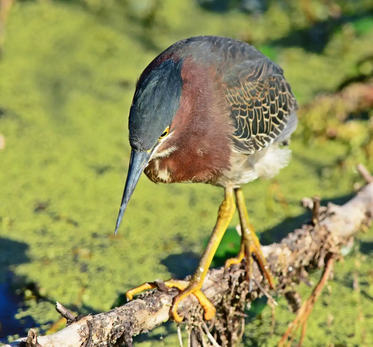 Вот есть такая птичка - Американская зелёная кваква (Green Heron) — небольшая болотная птица семейства цаплевых, обитающая на американском континенте. Вот такой себе комочек. А знаете, говорят что 90% объема у нее занимает шея.
