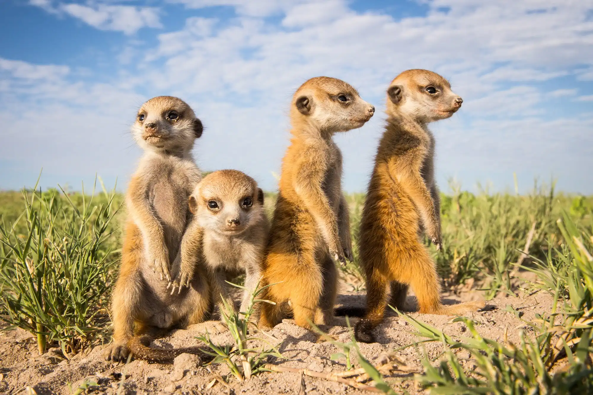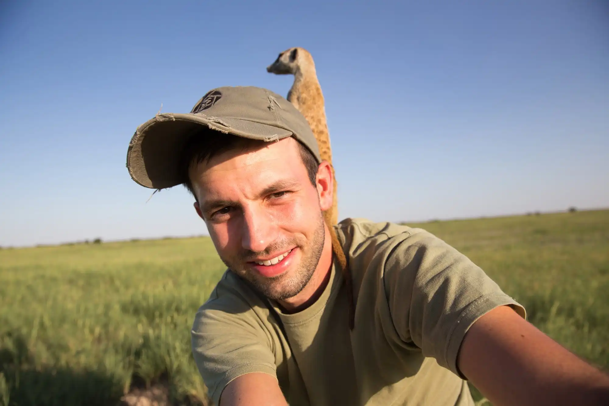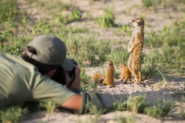 Для создания своих фотосерий дикой природы, Уилл Беррард-Лукас (Will Burrard-Lucas) объездил многие страны мира. Для фотографирования сурикатов, он отправился в Ботсвану. Здесь его ждал по-настоящему радушный приём. Оказалось, что сурикаты вовсе не боятся незнакомого человека с большой камерой, а даже наоборот. Ведут они себя крайне нагло, забираются фотографу на голову и даже выпускают из нор детёнышей. Фотограф Уилл стал для них нечто вроде смотровой площадки. Любопытные зверьки ведут себя как домашние кошки, хотя, вроде бы, в дикой природе должны были научиться осторожности и быть очень пугливыми. Вероятно, незнакомый вид удивительного гиганта и его безобидность быстро сказали сурикатам, что его и съёмочную группу бояться не стоит. К тому же, пока фотограф рядом, семейству сурикатов не грозит опасность от хищников.