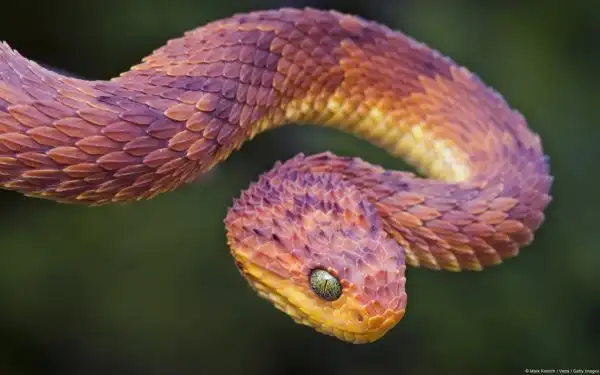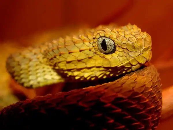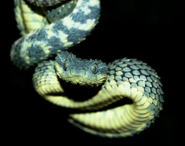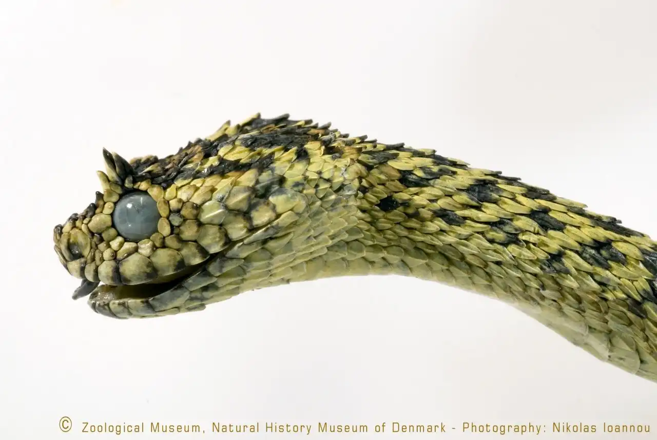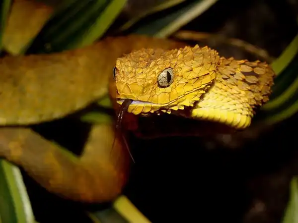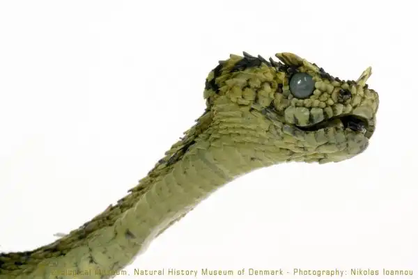 ДРЕВЕ́СНЫЕ ГАДЮ́КИ (Atheris), род высших змей семейства гадюковых змей; включает несколько видов, распространенных в лесах Центральной Африки от Гвинеи до Уганды и к югу до Замбии. Они ведут древесный образ жизни, что отразилось в строении этих змей. У них стройное и ловкое тело, длиной около 60 см, голова треугольной формы с выраженным шейным перехватом. Лазанию способствуют напоминающая по форме мелкий лист сильно ребристая чешуя, цепкий, закручивающийся хвост. Древесные гадюки окрашены в маскирующий зеленый цвет.