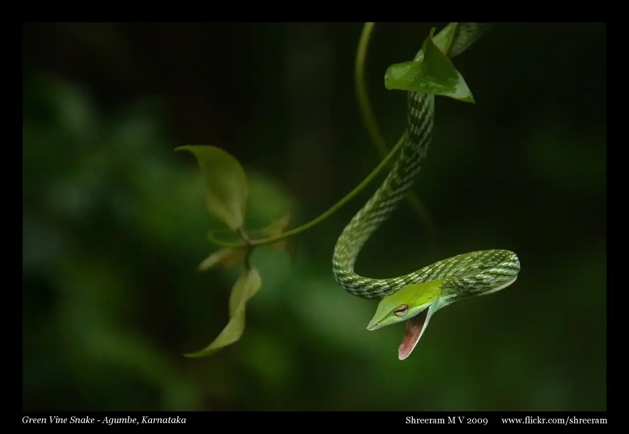 Green vine snake, Green whip snake, Malayan whip snake, Boie’s whip snake, Grass green whip snake, Himalaya-Malayan green whip snake, Gunther’s whip snake, Oriental whip snake, Asian vine snake, Long-nosed tree snake (англ.).