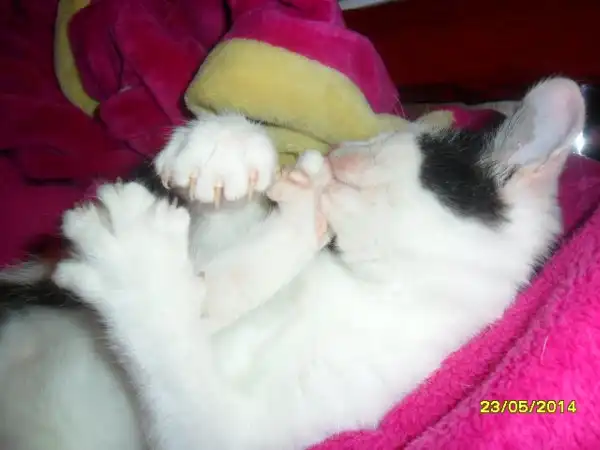 Мордочка от укусов уже начала зарастать. Лоточек пока без промахов, кушает все.