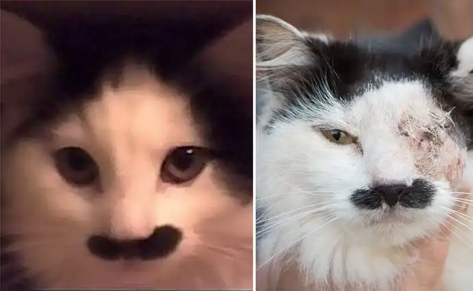 Баз, семилетний кот, имеет характерный участок черного меха под носом, который напоминает усы нацистского диктатора.