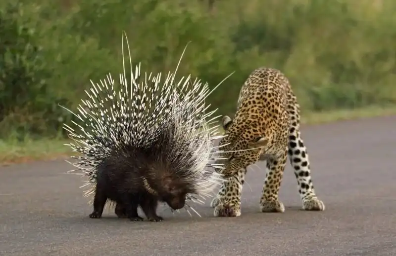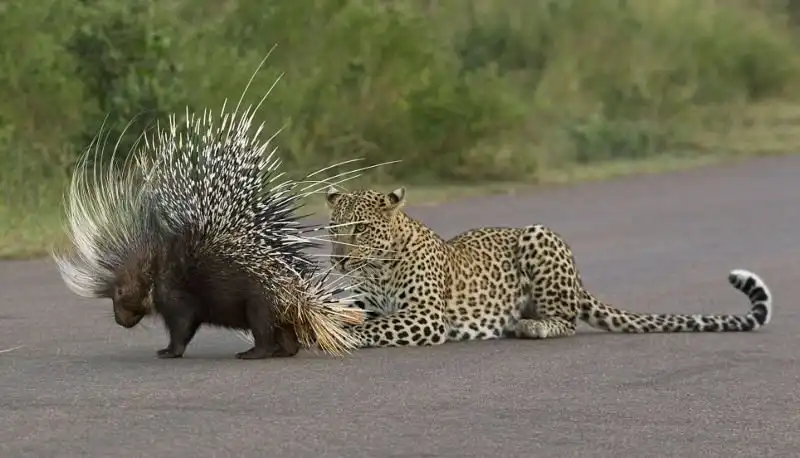 26-летний охранник национального парка в Йоханнесбурге Крейг Шрайбан сфотографировал неудачную попытку молодого леопарда пообедать дикобразом. Но не тут то было - пробиться сквозь частокол острых иголок не так уж просто. Около часа продолжалась схватка, и большая кошка осталась ни с чем, кроме ран от уколов.